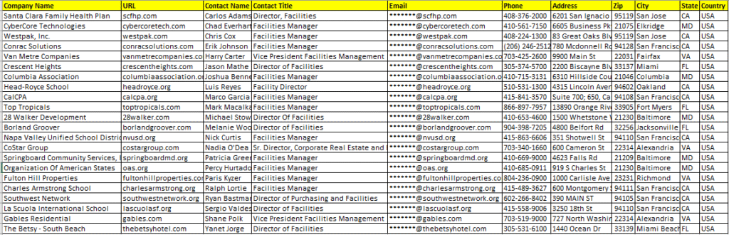 - Facility Manager Contact Lists: We offer highly targeted and up-to-date contact lists of facility managers, ensuring you can connect directly with the decision-makers in facilities management.